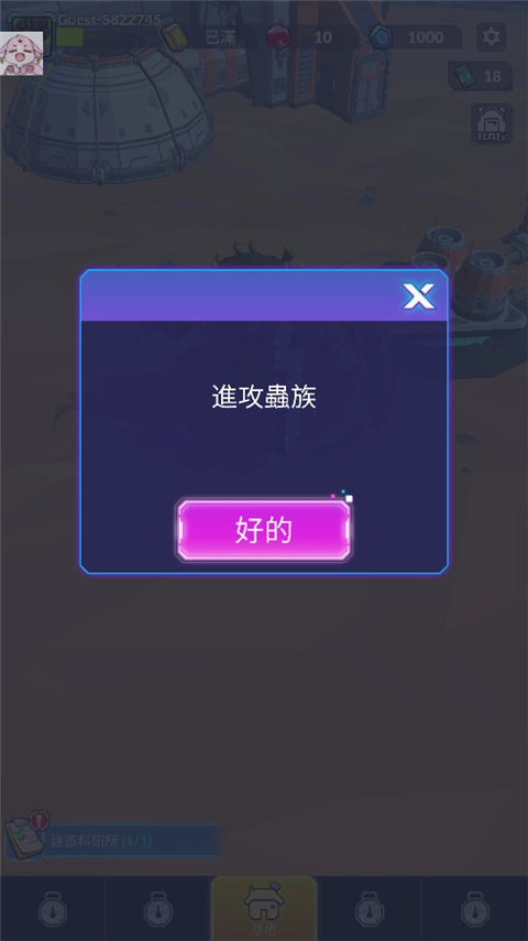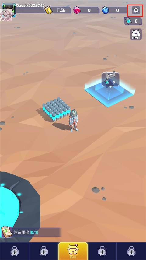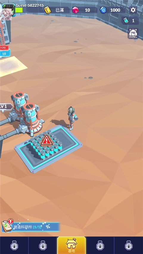 1、进入首页后,先操控角色收集蓝色能源,收集完毕后,移动到岛屿建造区域,消耗能源来建造指挥室;