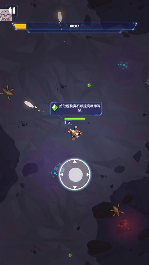 8、对战玩法类似割草,玩家需拾取宝石提升机甲等级,并且只需操控机甲移动,它会自动发起攻击;