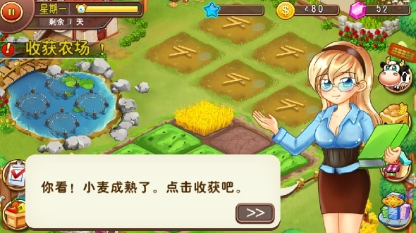 9、小麦成熟后,我们点击就可以收获。