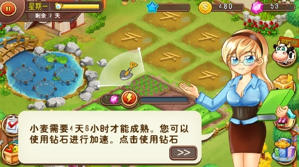8、小麦的成熟时间为4天6小时。若想加快成熟进度,您可以消耗钻石来实现,点击即可使用钻石进行加速。