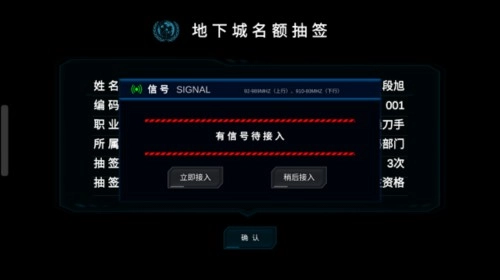 3.抽中后,界面会弹出“有信号待接入”的提示,同时出现两个选项。选择“立即接入”即可进入,其余内容玩家将在体验过程中逐步了解。