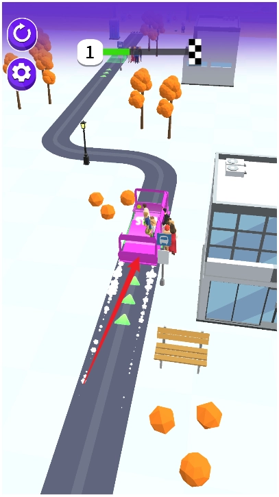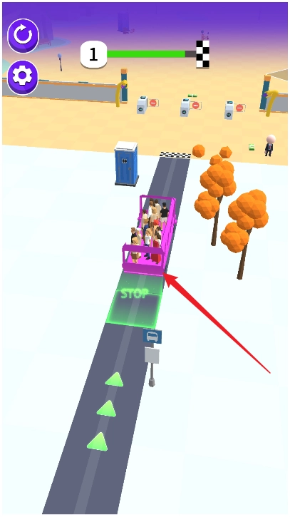 1、玩家要操控公交车的移动,通过按压和松开屏幕,保证公交车精准停靠在指定的站点。