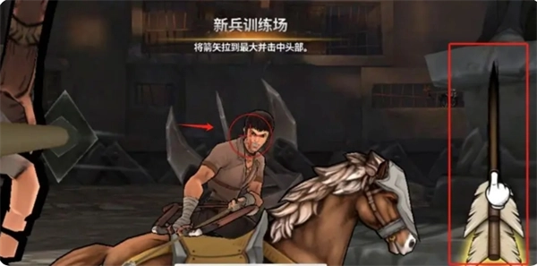 图三:用手指按住并【向下滑动箭矢】来完成蓄力,与此同时将光标移动到对方箭士的身体部位