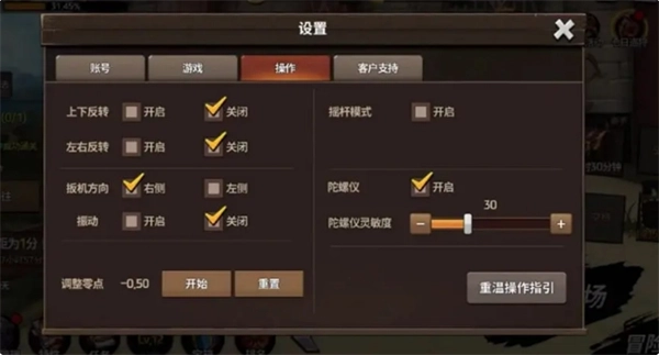 已登录的用户,可通过设置里的“操作”选项进行切换,还能自行调节灵敏度。