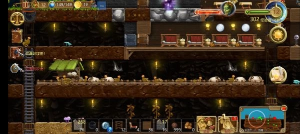 3、每隔一段时间,会有怪物前来攻击矮人部落,玩家需要提前建造陷阱、炮台等防御设施。