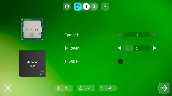 8、接下来点击右上角的播放按钮,员工就会开始开发这款处理器,左上角可以查看开发进度。