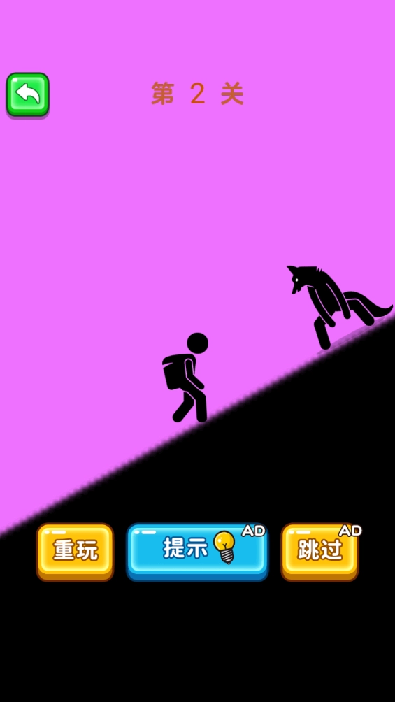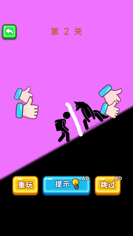 4.你得仔细观察图片,用画线的办法保护火柴人免受伤害,遇到关卡卡住时能点击下方的提示,要是不想玩了可以直接跳过。