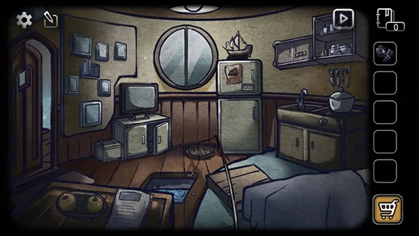 回到房间,挑选潜水装备,点击地板中央那个之前获取鱼的洞口即可通关。