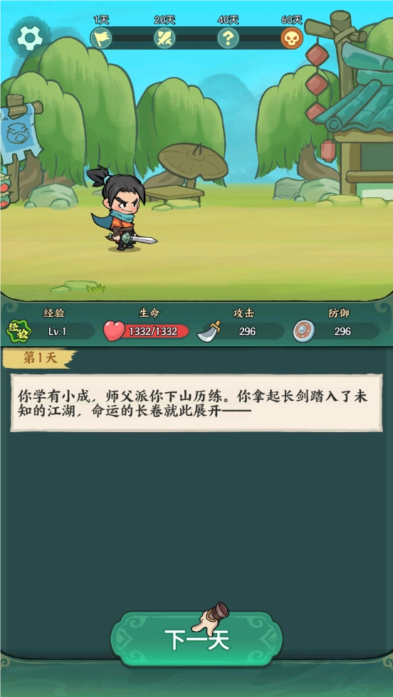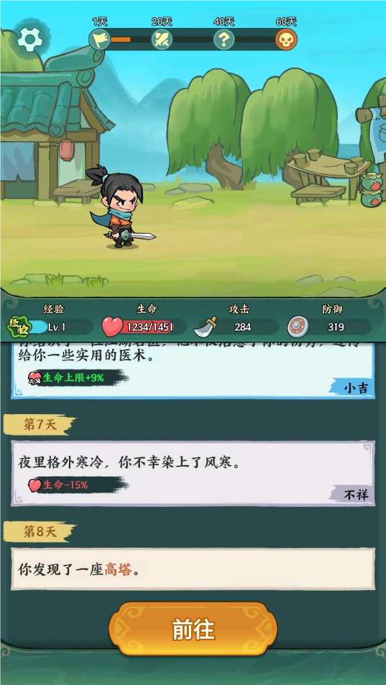 这款游戏的核心玩法理解起来并不难,尽管采用了闯关模式,但其本质依然是由一系列随机事件构成的。玩家在每一关里都要面对形形色色的随机事件,通过这些事件来提升自身的战斗能力,持续战胜敌人,只要坚持到第60天,就能顺利通关。