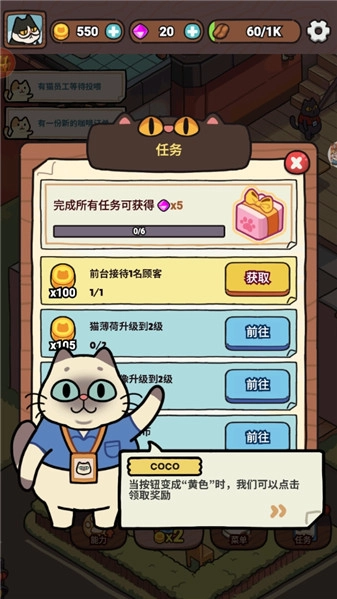 这是一家画风超可爱、玩法超轻松的趣味咖啡店。在这里,你将化身为猫屎咖啡店的新任老板!你需要打造一个既舒适又充满吸引力的用餐空间,招募萌萌的猫咪服务员,用心调配出各种风味的咖啡,力求每一杯都能让顾客赞不绝口。同时,你还可以不断尝试研发全新的咖啡饮品,用独特的创新口味吸引更多顾客前来光顾。