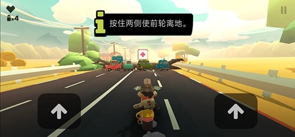 4、遇到障碍物时,按住两侧让前轮离地,通过起飞动作越过障碍。