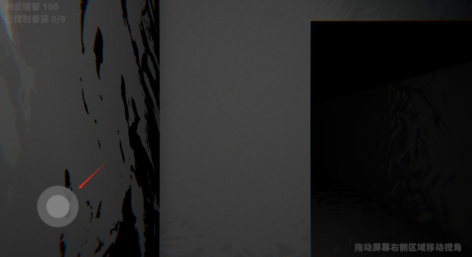 2、点击左下方的虚拟转轮键盘,可控制方向前进以寻找番茄;拖动屏幕右侧区域,能够移动视角!