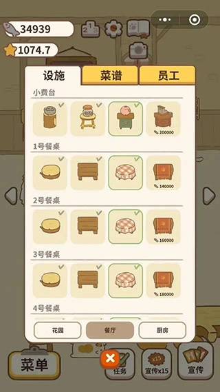 6、收集更多奖励来持续升级你的餐厅,这样就能同时容纳更多的小动物啦。
