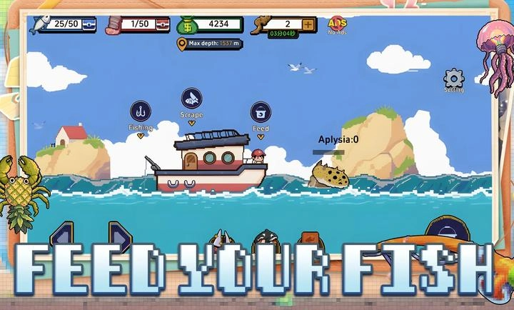 3、此外还设有社交互动机制,玩家能够把处理好鱼鳞的鱼投喂给饥饿的顾客或是海龟,以此来获取金币。