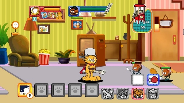 用饼干给你的加菲猫提升等级,技能、队友、家具之类的也都能升级,只要你想得到的都可以。把自己武装起来,让战斗力翻好几倍,最后把家改造成超级食物战场,外星人这种对手根本不值一提,就连咱们要守护的冰箱都能升级——外星人尽管放马过来,打不过我,你连我的冰箱都别想带走。