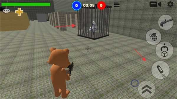 1.您得借助虚拟摇杆来操控小熊移动,利用射击按键完成瞄准攻击,并且能够一键切换各种不同的武器。