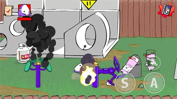 5、草坪关卡,要留意穿西服的小朋友用马桶搋子发起的攻击。