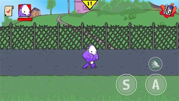 2、界面左侧用于控制角色移动,右侧的A键对应轻拳,S键对应重拳,鞋子图案的按钮则是疾跑功能。