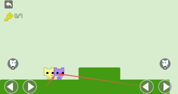 1、进入关卡后,左侧方向键用于操控蓝色角色移动,右侧方向键则会控制红色角色进行同步动作。