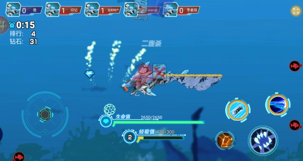 1、一进入就能变身为机械鲨,在深海世界开启紧张刺激的求生大冒险。