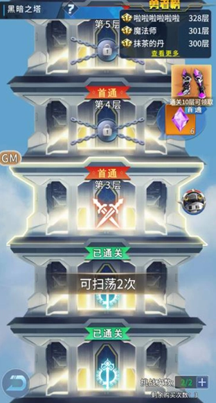 每天有两次挑战副本的机会,通关后能获取大量英雄碎片、金币或经验。