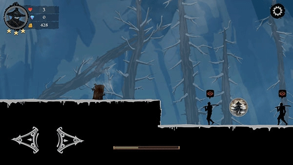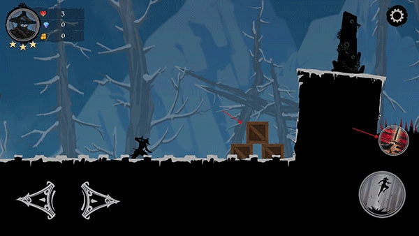 玩家将化身忍者,在遍布陷阱、敌人与无尽阴影的世界里奔跑、跳跃、挥刃砍杀,同时躲避致命障碍。游戏采用横版动作机制,玩家需针对敌人的攻击与移动做出即时操作反应,并结合武器与技能的组合展开战斗。
