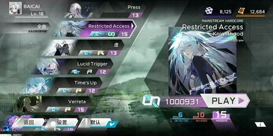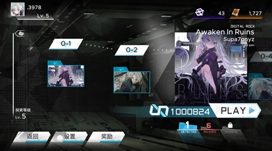 1、打开范式起源,进入游戏界面后,玩家能够自主挑选曲目,并选择难度来进行挑战。