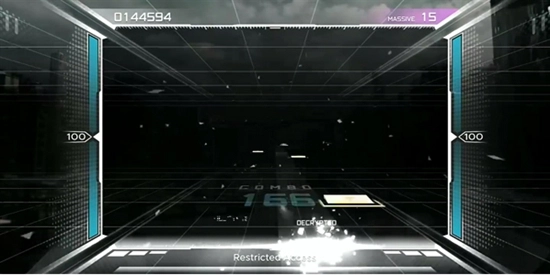3、采用四面环绕加空间下落的节奏玩法,玩家需要点击不断下落的音块;