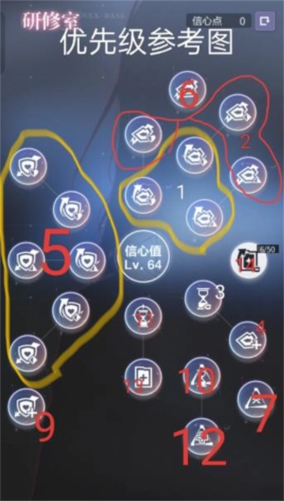 3、研修室里的技能升级也需要挑选一番,具体的升级顺序可以参考下图所展示的内容。