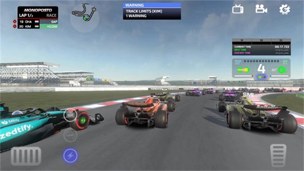 6、比赛开始后,你将与21名赛车手同场竞技,左侧控制转向,右侧操作油门和刹车,若不习惯默认操作方式,可在设置中调整操控模式。