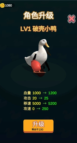 可以解锁各式各样的外观鸭子,通过升级来叠加技能增益效果,打造出专属于自己的最强战斗鸭。