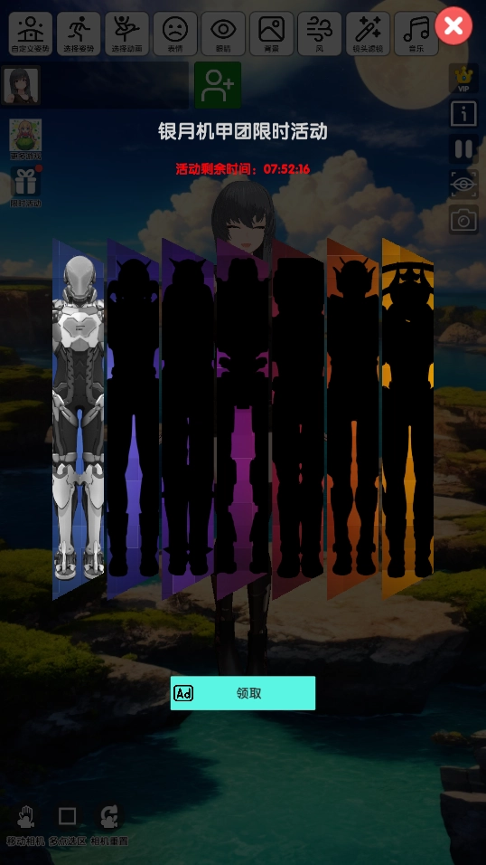 支持动态场景切换,包含自然光影、都市街景、幻想空间等丰富背景库;还配备了智能风效模拟系统,能够实时调整气流的方向和强度,让发丝的飘动、衣摆的起伏更有真实的律动感。完成构图后,一键高清存档功能可以即时捕捉灵感的瞬间,将你的每一份匠心定格成专属的数字藏品。