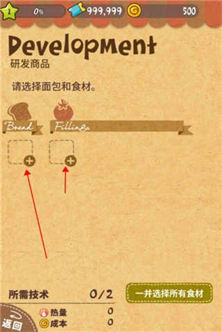 4、点击此处将目前技术能够放置的食材放进去;