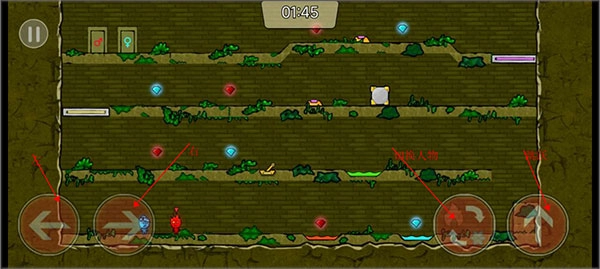 1:玩家需要操控冰火人展开挑战,务必保持细心,毕竟这里藏着不少隐藏的线索。