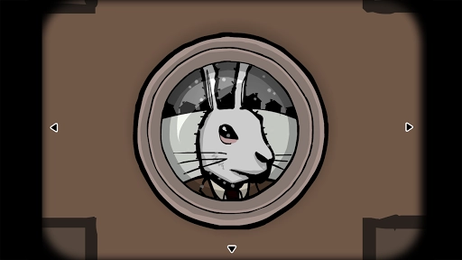 10、大门视角:窗外雪地上的兔子先生消失了,我们凑近猫眼查看,发现它已来到门前。我们后退几步后,兔子先生开始砸门,闯入房间后手持一把汤姆逊冲锋枪扫射,房间顿时变得一片狼藉。