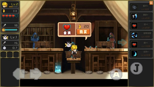 游戏操作包含四个按键,分别对应左右移动、跳跃和攻击功能。其中,“A”键负责攻击,“J”键用于跳跃。不过,仅掌握单个按键的基础操作,是无法顺利通关的。玩家需要学会组合不同按键:前进时要持续攻击敌人,遇到空中的怪物需配合跳跃键;长按攻击键还能触发快速攻击,提升伤害输出。