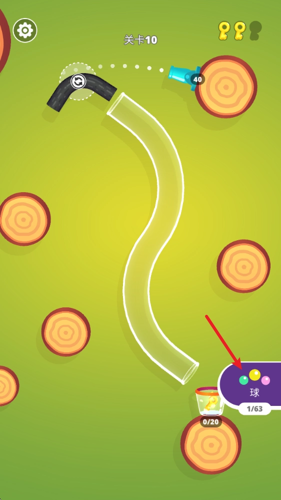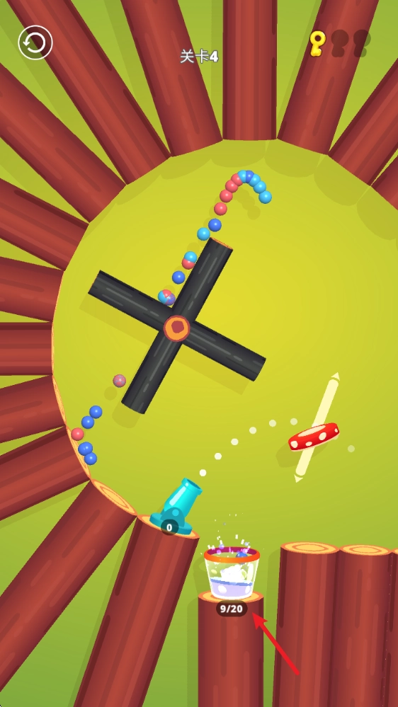 2、如图所示,发射出去的小球会全部装入杯子里,等杯子装满就能过关了。