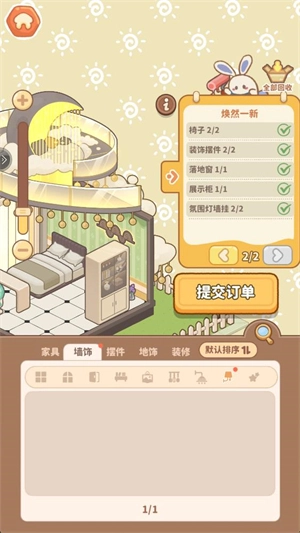 5、待所有家具都摆放完毕后,即可点击提交订单以获取奖励。