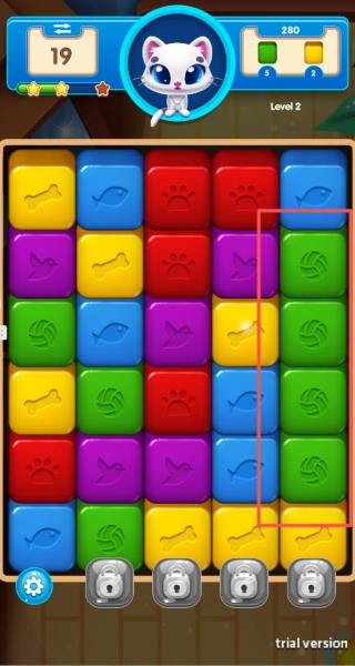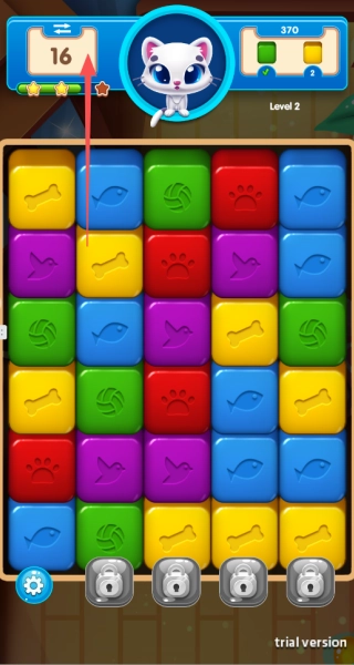 4、留意左上角的剩余步数提示,妥善规划每一步操作,保证在规定步数内达成关卡目标。