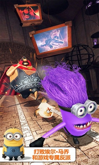 在这款游戏中,玩家操控的角色正是电影里那些搞怪十足的小黄人,而三位小姑娘则在游戏里扮演指导者的角色,引导玩家熟悉游戏操作。这款3D跑酷游戏凭借其灵活多变的视角切换、丰富多样的玩法设计、细腻精致的3D画面以及充满趣味的音乐音效,成为了一款当之无愧的五星级休闲佳作。