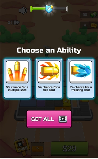 3、当击杀丧尸达到一定数量时,可从三种能力中任选其一,挑选出自己所需的能力。