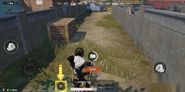 1、跳伞降落到地面后,通过拖动屏幕左下角的虚拟轮盘,就能操控角色进行移动。