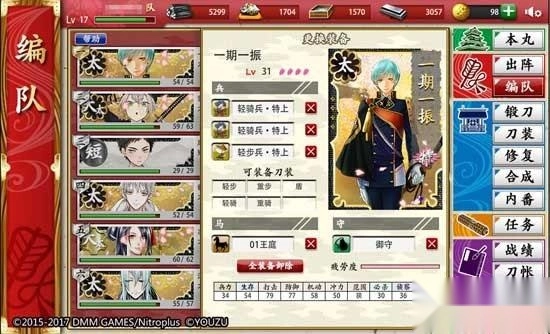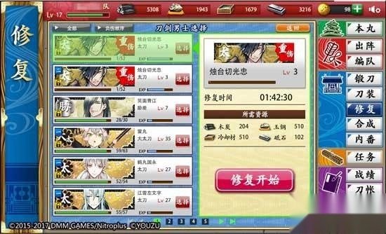 1、及时修复受伤的刀剑男士。