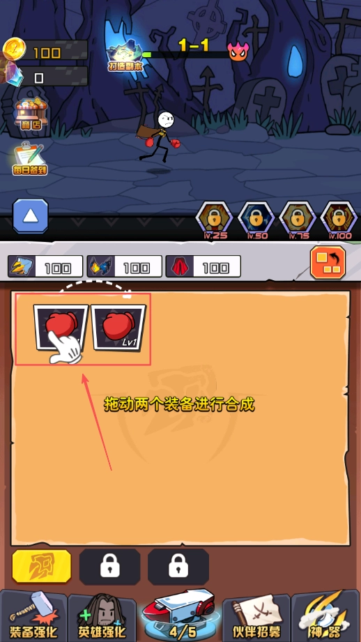 4、用心完成关卡任务以获取丰厚奖励,解锁全新场景与更高级别的装备合成配方,持续提升角色能力及装备等级。