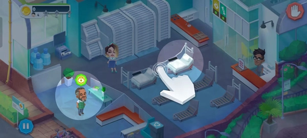 2、点击关卡开始接诊病人,通过操作护士把病人引导至病床上。
