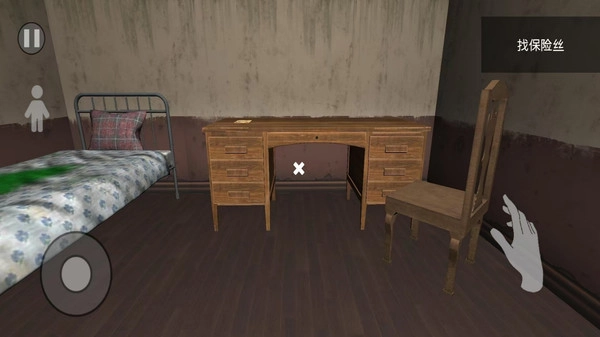 2.拖动左侧的虚拟摇杆,就能操控角色的移动方向,在房间里探索以寻找道具,同时还要躲避怪人的追击,每一步操作都得保持高度警惕。