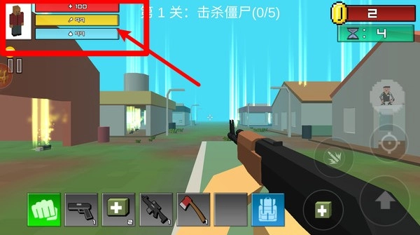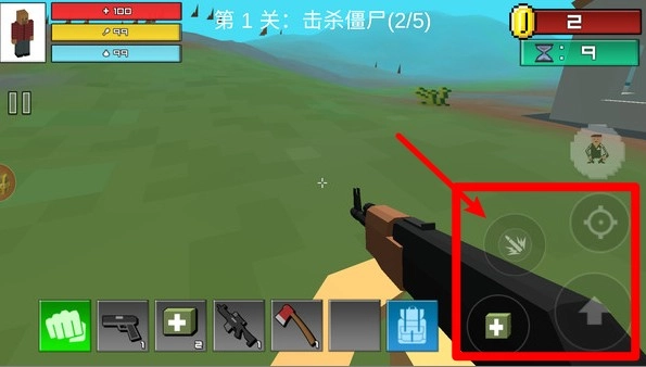 1.右侧功能按钮:画面右下角设有攻击、跳跃、瞄准、使用道具等操作按钮,是与丧尸战斗时的核心控制区域。