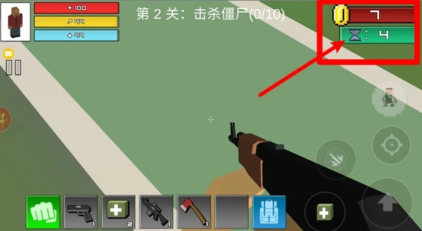 2.右上角状态栏:该区域会显示当前拥有的金币数量以及倒计时数值。其中,金币可用于购买装备,而倒计时则与通关的时间限制相关。