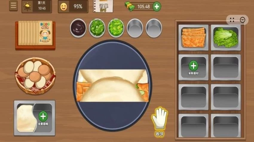 1、核心玩法围绕煎饼制作展开,需依据订单需求完成制作。在过程中要精准把控火候和翻面的时机,以此确保煎饼的基础口感。最终实现菜品价值的提升以及顾客满意度的提高。