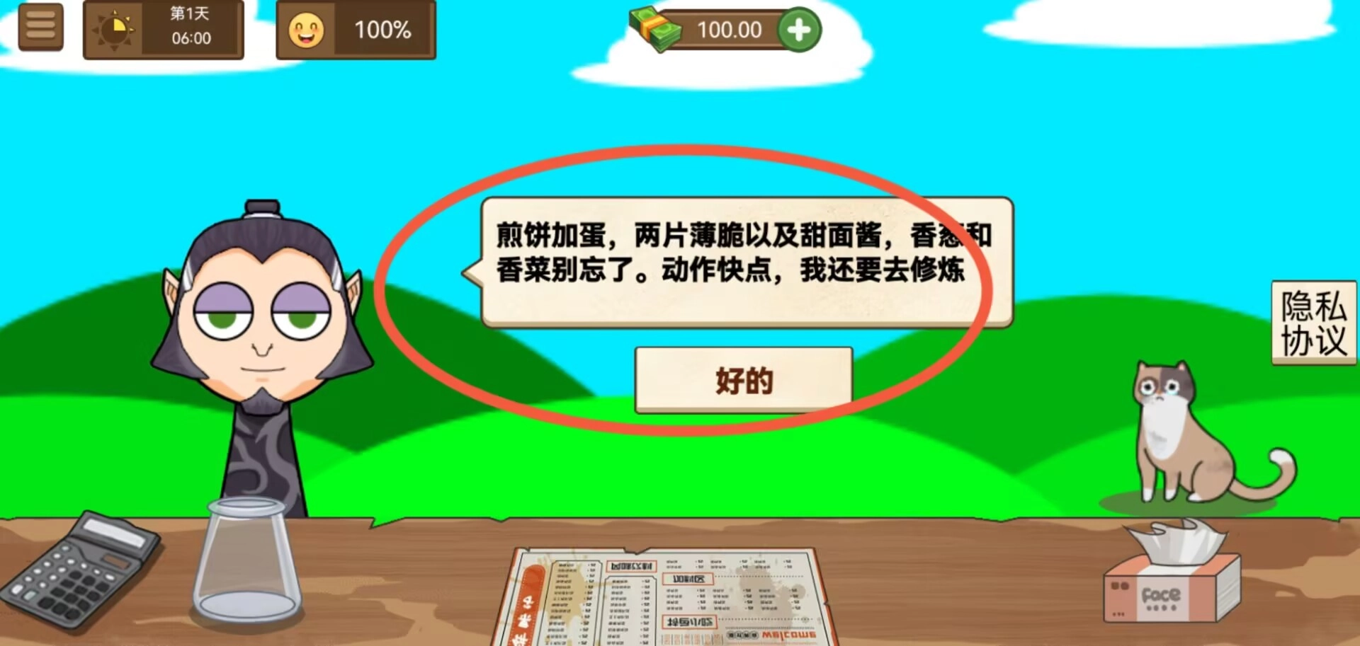 2、顾客服务系统,通过合理规划制作顺序来缩短顾客等待时间。对于特殊的神仙顾客,需优先为其提供服务,完成后可获得额外奖励。若收到差评,将对店铺口碑产生负面影响。